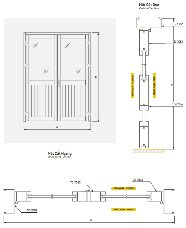 Cửa đi 700 được ứng dụng phổ biến trong thiết kế cửa đi của các công trình dân dụng. Được lắp ráp từ hệ 700 với thiết kế đảm bảo khả năng chịu lực cao. Các hệ nhôm được sản xuất tại Tiến Đạt với quy trình sản xuất được thực hiện theo đúng tiêu chuẩn ISO 9001: 2015 và QCVN 16:2019/BXD.