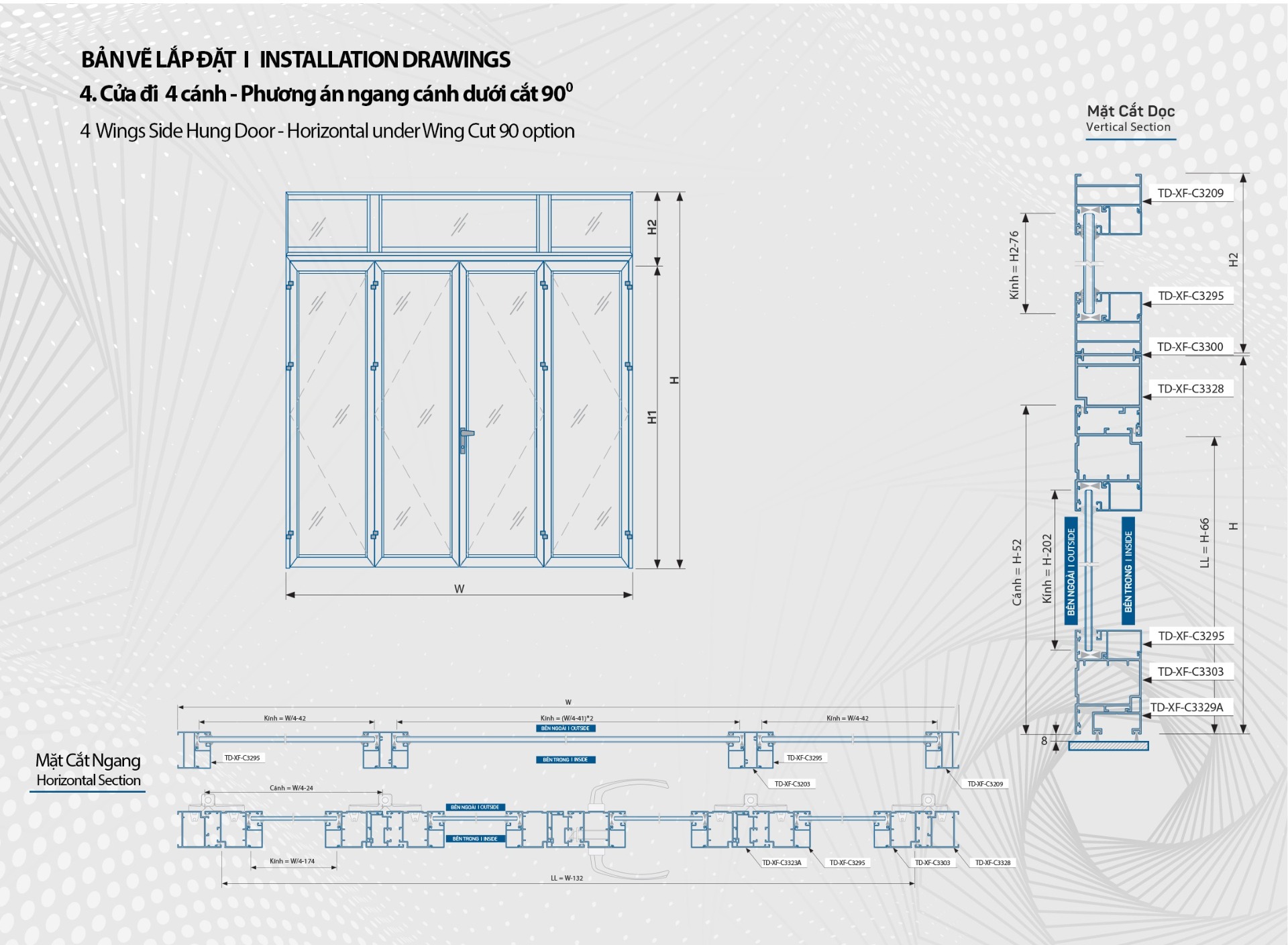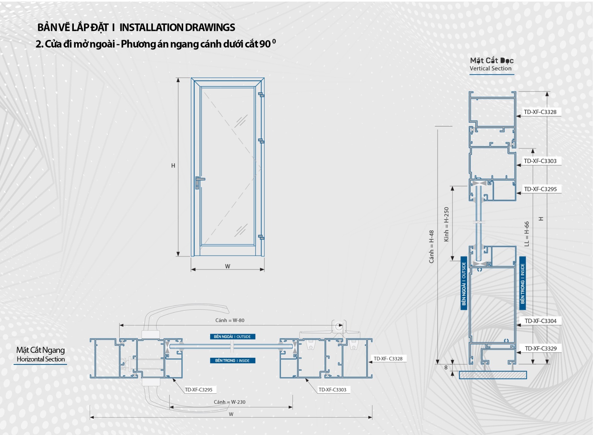 Cửa đi hệ XTDA 55 được thiết kế với đa dạng các mẫu như: cửa đi mở ngoài và cửa đi mở trong với các mẫu cửa đi 1 cánh 2 cánh và 4 cánh. Mỗi thiết kế sẽ có sự lắp ghép giữa các hệ khác nhau. Mẫu cửa nổi bật phong cách đơn giản và hiện đại. Vì vậy, mẫu cửa này rất phổ biến cho các công trình kiến trúc ngày nay.