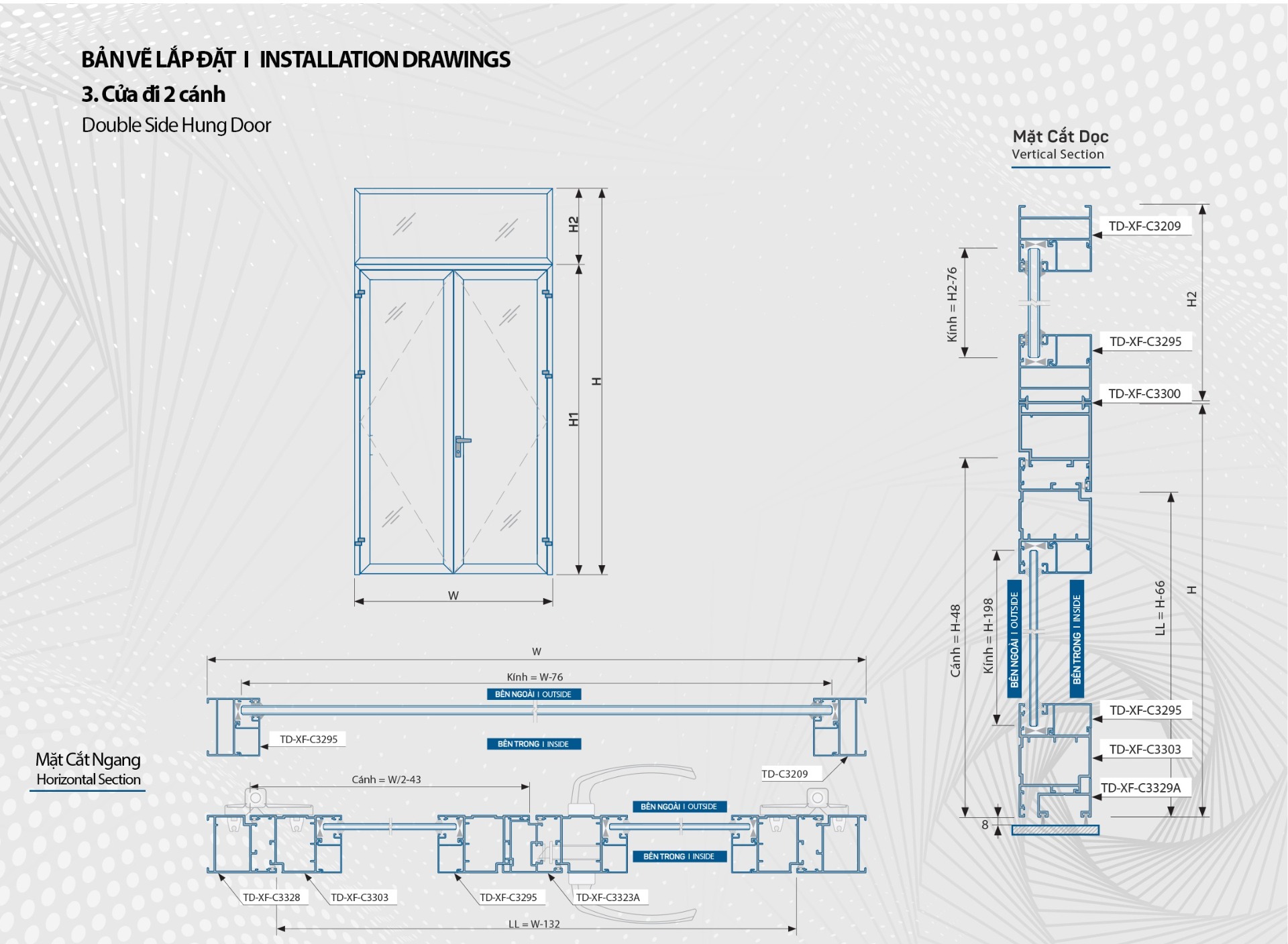 Cửa được cấu tạo từ thanh profile XTDA (khuôn cửa, khung cánh) cấu trúc của thanh nhôm dạng khoang trống với đường gân ở giữa. Nhờ vậy, thanh nhôm có khả năng chịu được lực lớn, chắc chắn.