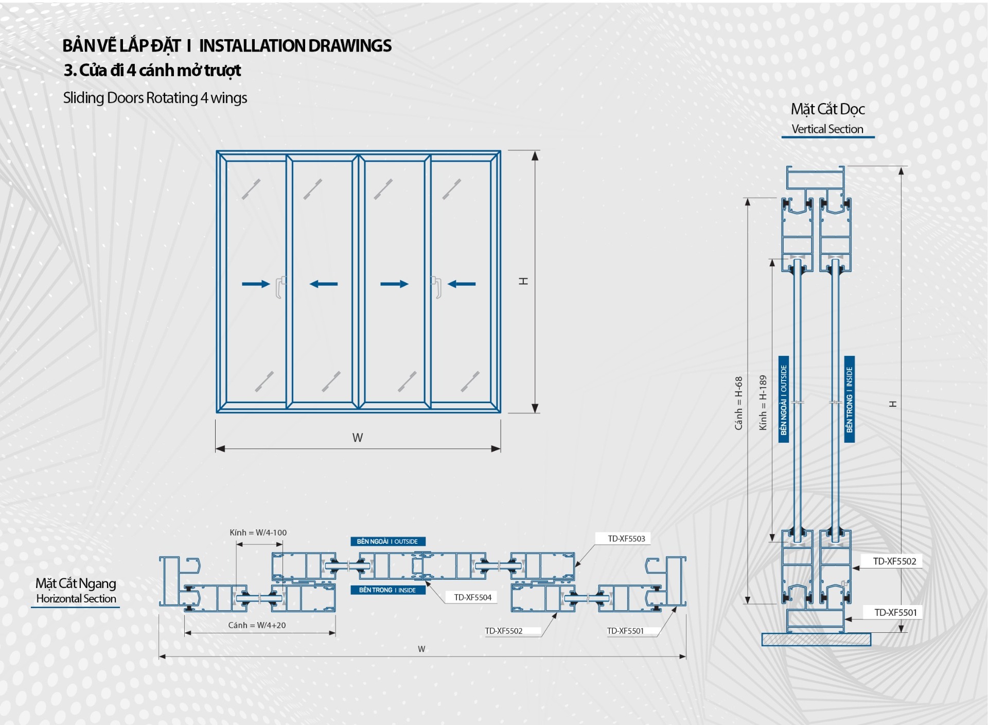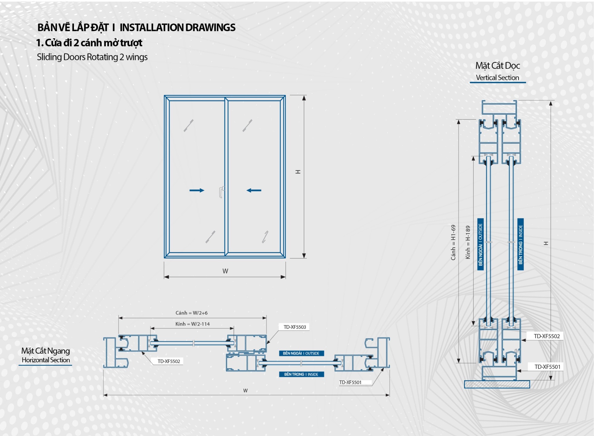 Các mẫu cửa trượt XTDA 55 ứng dụng trong thiết kế cửa đi và cửa sổ, có kết cấu gọn nhẹ, sử dụng nhẹ nhàng, thuận tiện.
