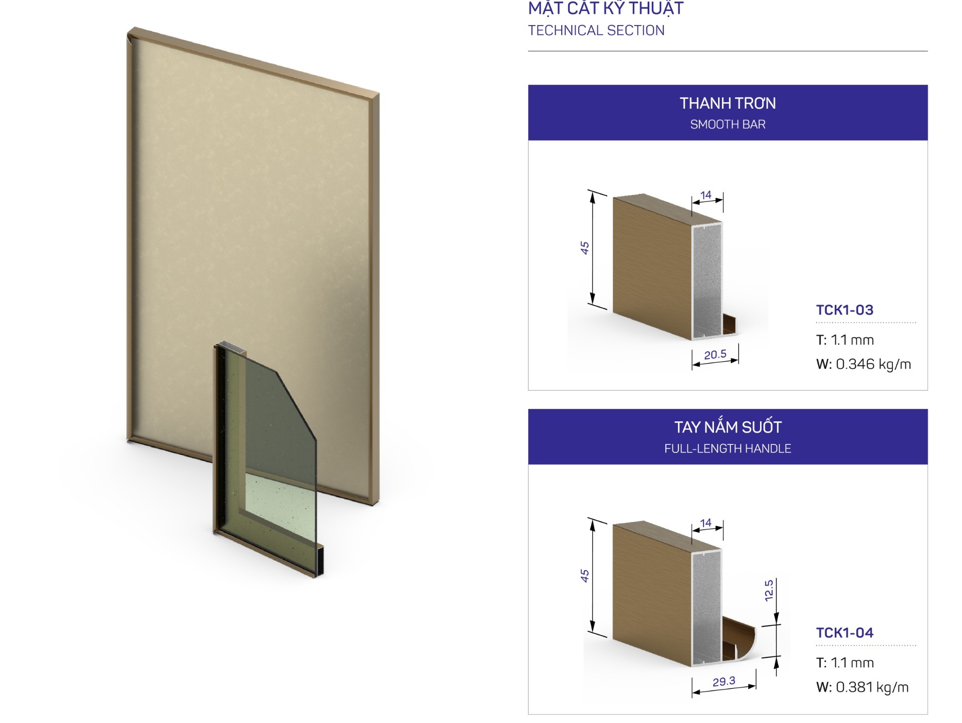 Hệ có khe kính tay nắm suốt Tiến Đạt thường được sử dụng kèm những phụ kiện sau: