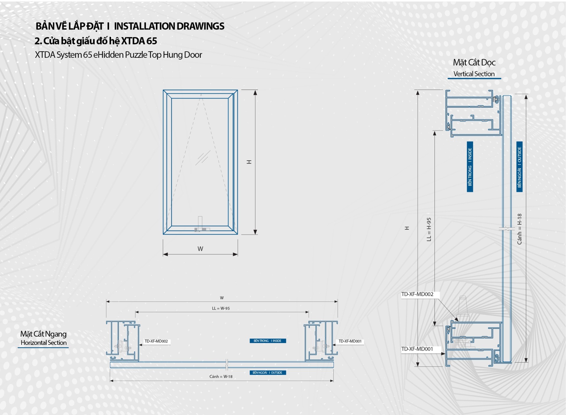 - Hệ nhôm XTDA 65 tại Tiến Đạt Aluminium đáp ứng đủ các yếu tố về chất lượng tính thẩm mỹ cũng như đảm bảo độ an toàn cao, rất phù hợp cho xu hướng xây dựng các tòa nhà cao ốc hiện đại. Ngoài ra, hệ nhôm này còn được sử dụng trong thiết kế cửa bật giấu đố.