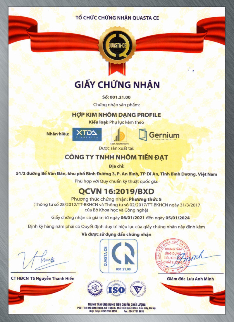 CHỨNG NHẬN QUY CHUẨN KỸ THUẬT QUỐC GIA QCVN 16:2019/BXD