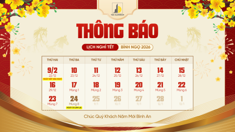 NHÔM TIẾN ĐẠT - THÔNG BÁO LỊCH NGHỈ LỄ TẾT DƯƠNG LỊCH 2026
