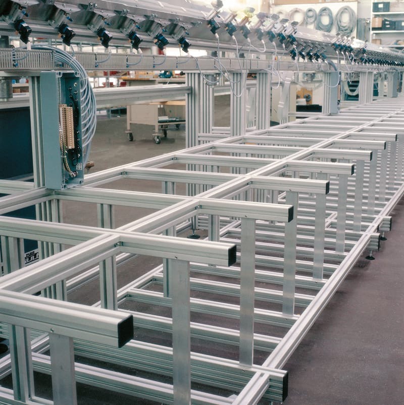 - Bên cạnh đó, khung nhôm băng tải nhẹ dễ dàng tháo lắp và di chuyển linh hoạt, không những mang lại hiệu quả kinh tế nó còn giảm thiểu tai nạn trong lao động, đảm bảo độ an toàn cao.