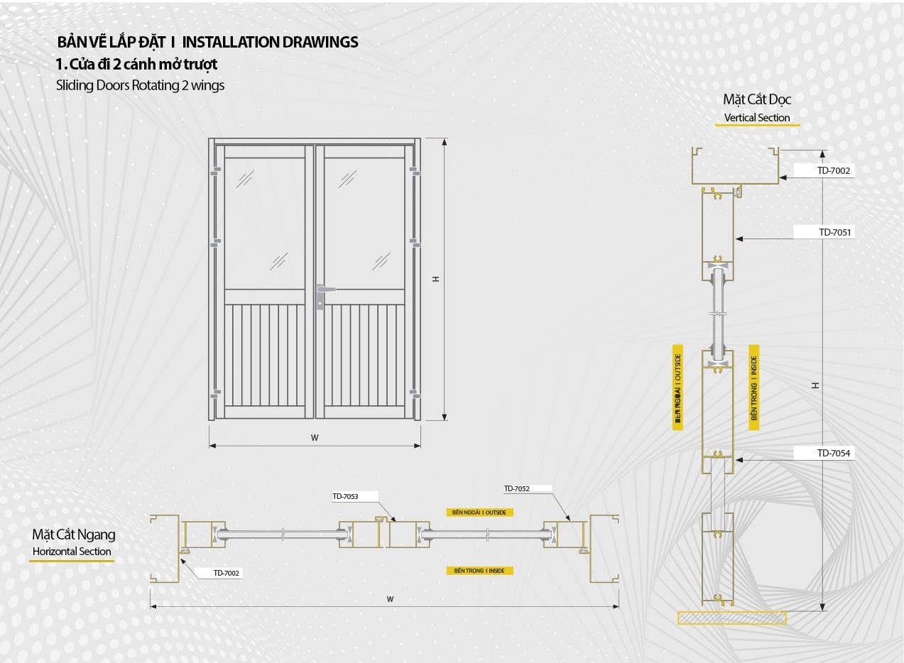 Cửa đi 700 được ứng dụng phổ biến trong thiết kế cửa đi của các công trình dân dụng. Được lắp ráp từ hệ 700 với thiết kế đảm bảo khả năng chịu lực cao. Các hệ nhôm được sản xuất tại Tiến Đạt với quy trình sản xuất được thực hiện theo đúng tiêu chuẩn ISO 9001: 2015 và QCVN 16:2019/BXD.