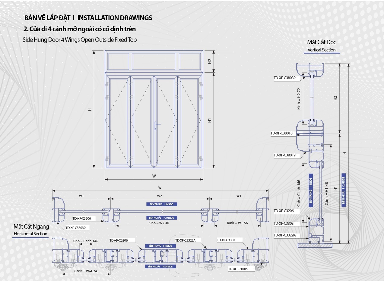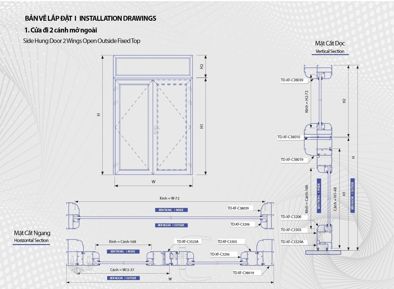 - Cửa đi khung bao 1000 được thiết kế đồng bộ từ thanh Profile cao cấp Gernium với hệ phụ kiện Kinlong và gioăng tạo nên độ kín khít, cách âm, cách nhiệt tuyệt đối.