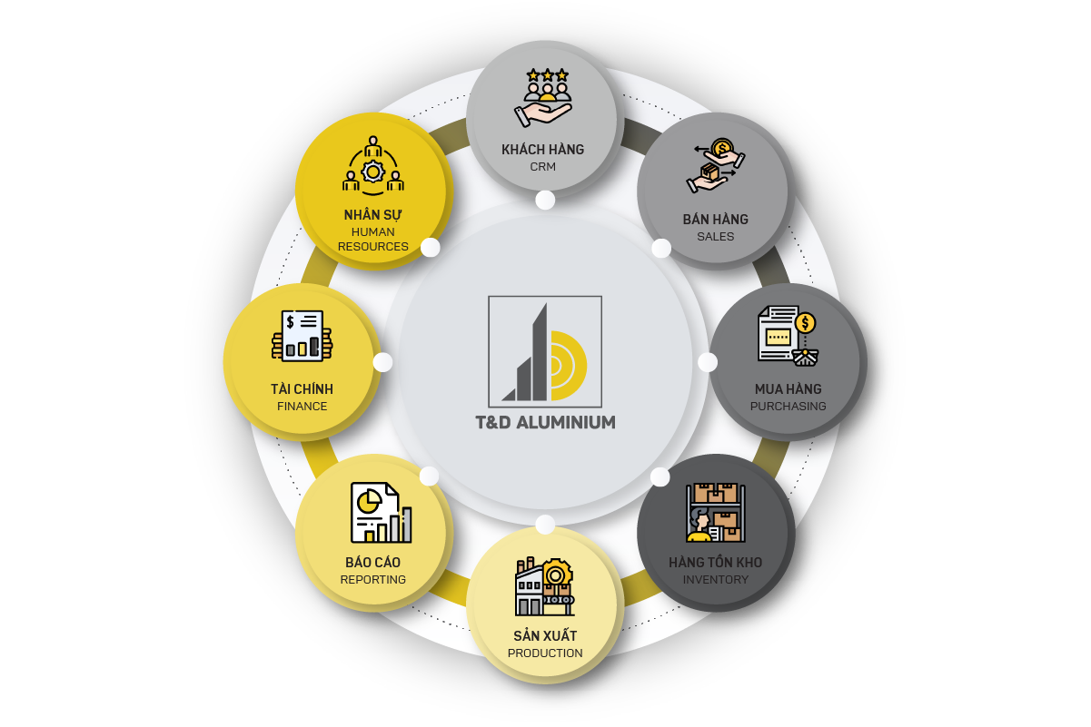 Công nghệ 4.0 đã tác động đến nhiều lĩnh vực, giúp cải tiến quy trình sản xuất và quản lý tại các doanh nghiệp. Trong lĩnh vực điều hành sản xuất, phần mềm quản lý ERP đóng vai trò quan trọng trong việc tối ưu hóa quy trình sản xuất, tăng năng suất và cải thiện chất lượng sản phẩm. Để quản trị hoạt động của doanh nghiệp, Công ty TNHH Nhôm Tiến Đạt sử dụng phần mềm quản lý ERP hỗ trợ . ERP giống như một hệ thống phần mềm khổng lồ, giải quyết được các vấn đề về nhân sự, tài chính, sản xuất, chuỗi cung ứng, kho, mua hàng, bán hàng và nhiều thứ khác.